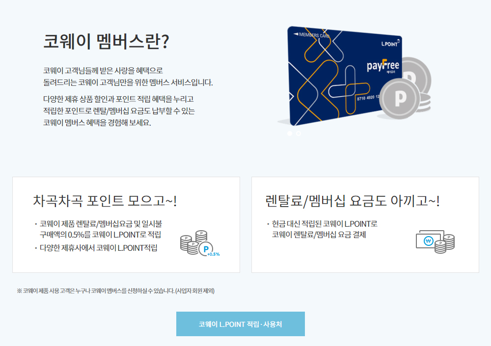 코웨이 렌탈 멤버쉽 2020-05-20 첨부파일 payfree.jpg : 294.6 M, 코웨이 주요 고객사 생활의 코웨이, 지속적인 품질의 고급화와 기술력 혁신을 통하여 글로벌 기업으로서 비전을 실현해가고 있습니다. 1544-2045 고객님께 가장 알맞은 제품으로친절하게 상담드리겠습니다.